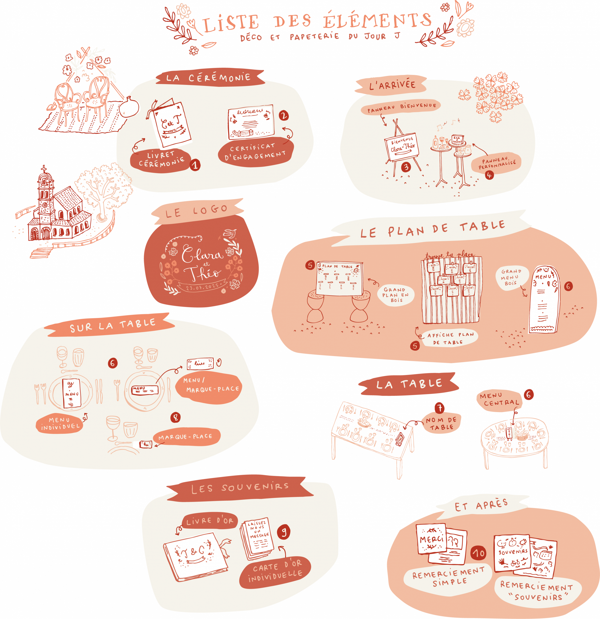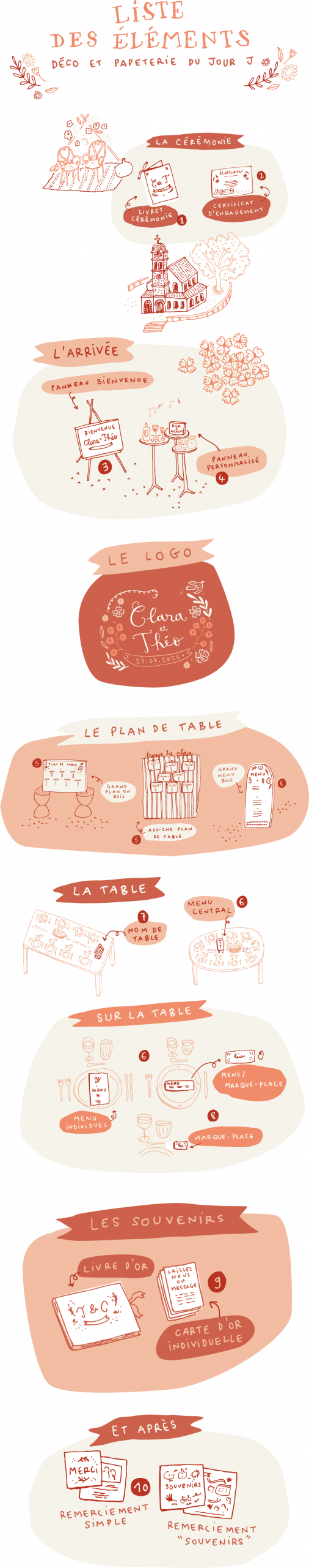 Et si nous n'avons pas travailler ensemble sur le faire-part, il est tout à fait possible de réaliser une papeterie personnalisée et illustré pour votre mariage.