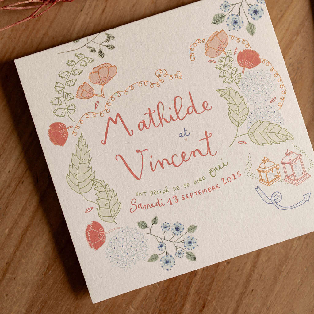 Vos invités seront touchés par le soin apporté à votre faire-part. C’est le premier aperçu de votre mariage, un avant-goût de l’univers que vous avez imaginé. Une illustration à l’aquarelle du lieu, des fleurs emblématiques de votre mariage ou des éléments de décoration illustrés avec amour donnera tout de suite le ton.