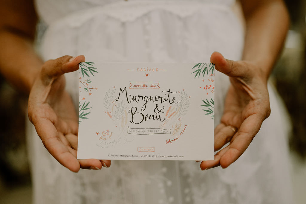 Nous avons décidé de l’adresser un an avant la célébration de notre mariage, pour maximiser nos chances d’avoir tous nos proches présents. C’est une pré-invitation qui nous laisse du temps avant l’envoi de l’invitation officielle, que nous prévoyons entre 6 à 8 mois avant le mariage.