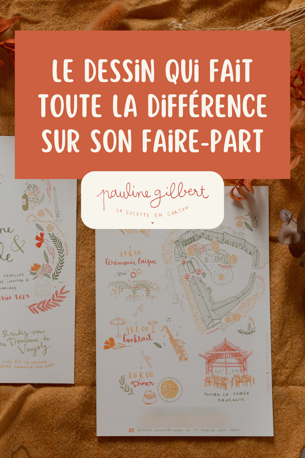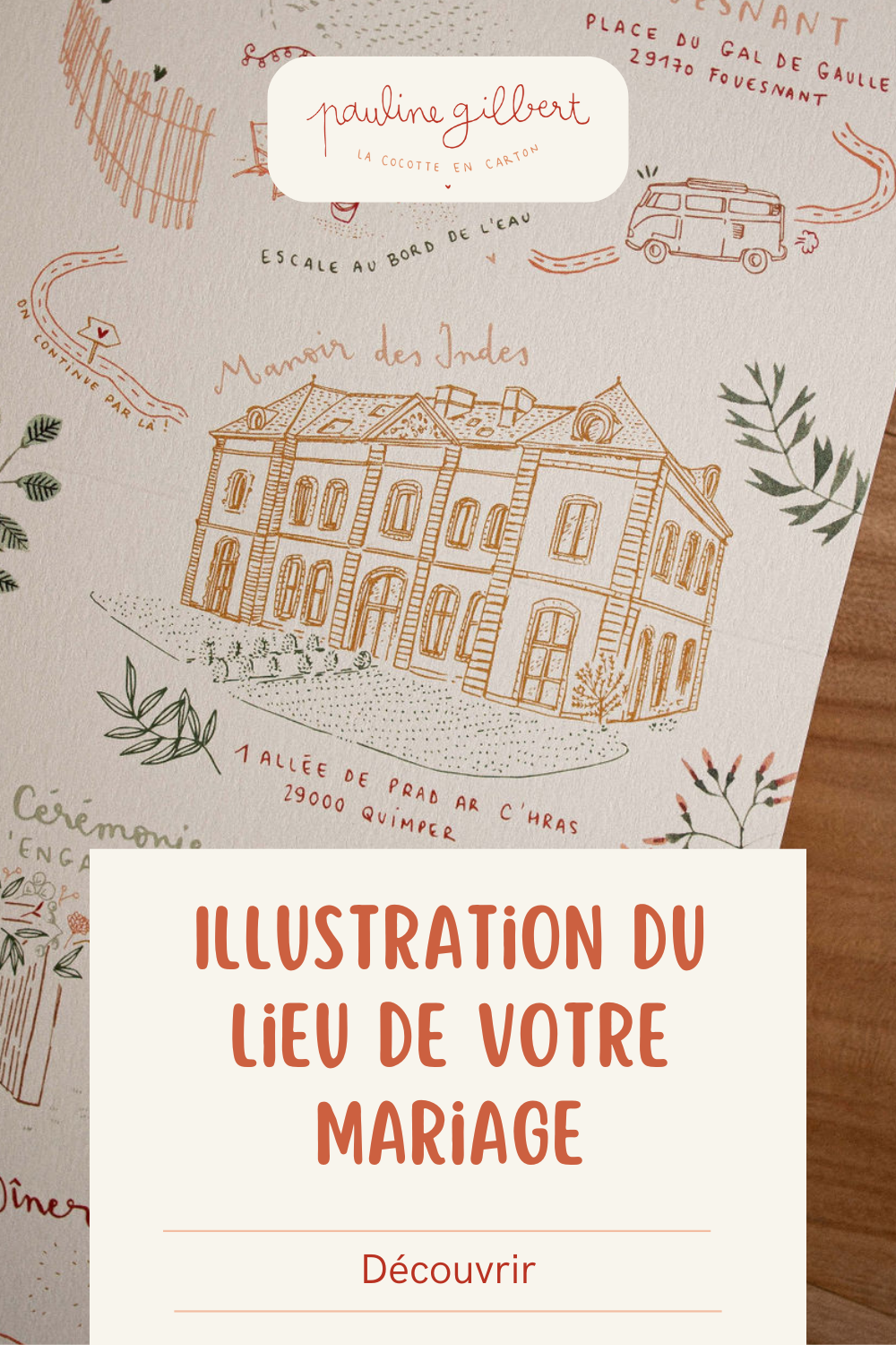 Faire dessiner le lieu de votre mariage permet de vous démarquer. Ce choix artistique apporte une note singulière et marquante. Vos invités se souviendront plus facilement du lieu et de l’ambiance du jour J, dès la première lecture.