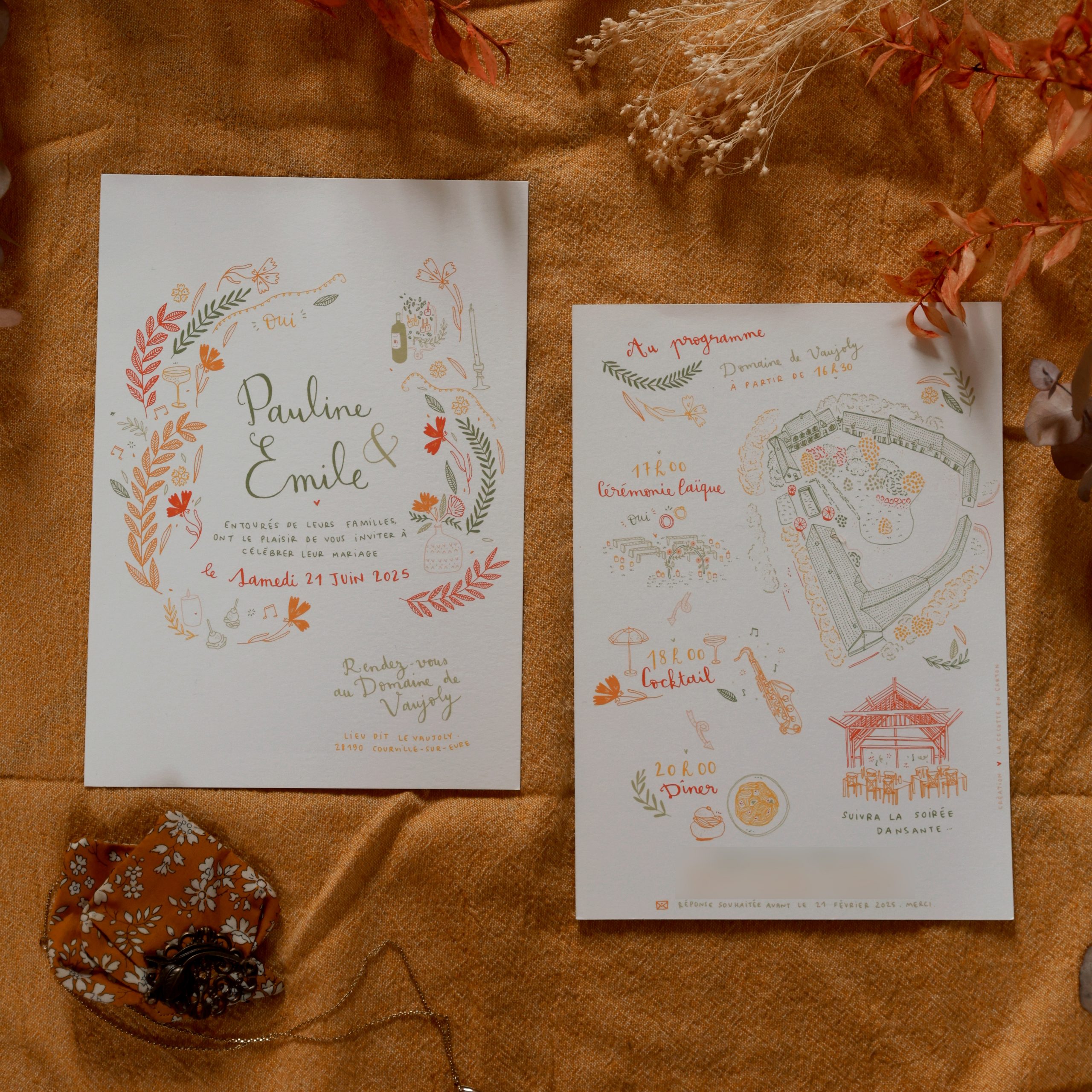 Illustratrice passionnée, je suis spécialisée dans la création de faire-part de mariage sur mesure et unique.