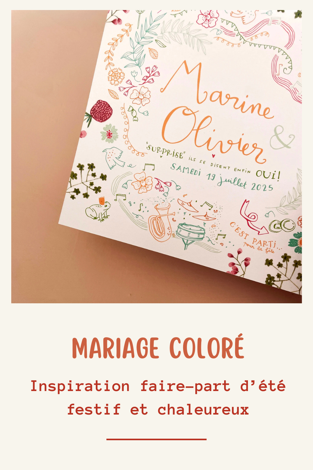 Et si vous avez envie d’un faire-part personnalisé et unique pour votre mariage d’été, je vous propose de remplir le formulaire de mariage par ici. J’ai hâte de découvrir votre joli projet.