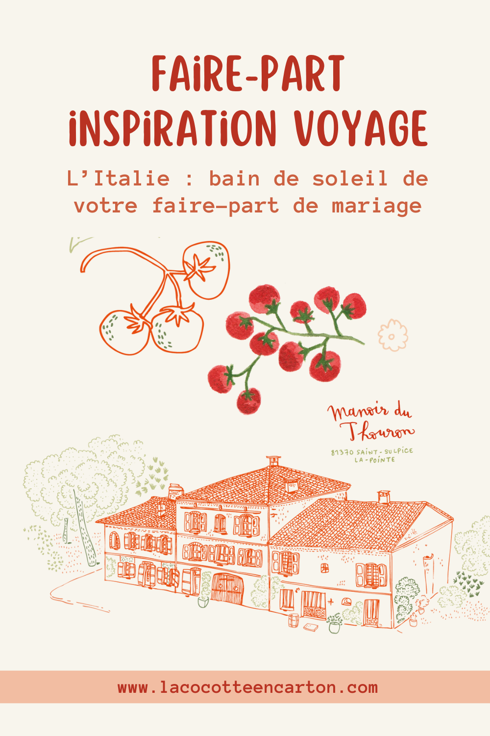 L’Italie, avec ses villes romantiques, ses paysages baignés de soleil et son art de vivre, est une source inépuisable d’inspiration pour un faire-part de mariage illustré.