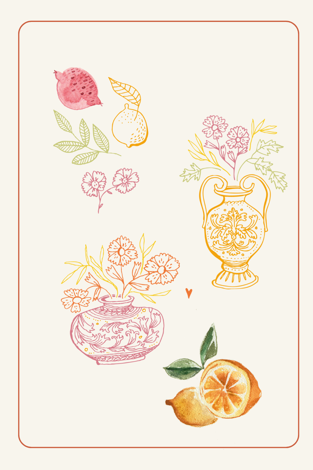 Pour un couple amoureux de la dolce vita, un faire-part illustré à la main inspiré de l’Italie est la promesse d’un mariage élégant, chaleureux et rempli de soleil.